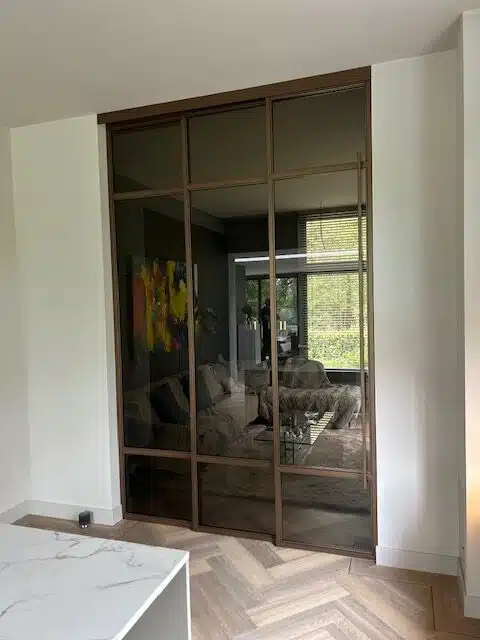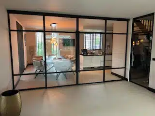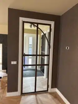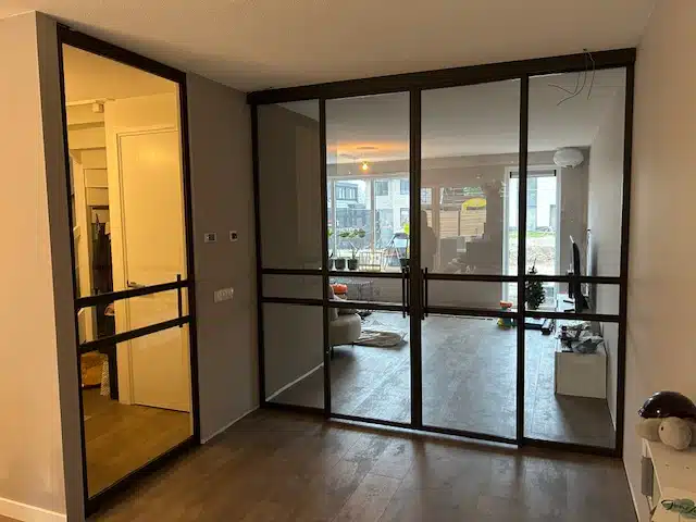 Ik maak stalen deuren zoals draai, taats of schuifdeuren van op maat gemaakte profielen met veiligheidsglas.